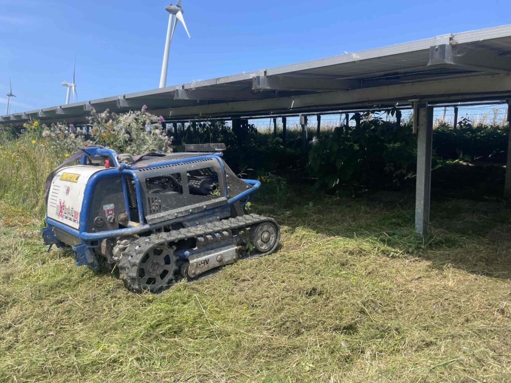 Bij Clean Solar Energy zorgen we voor professioneel groenbeheer op zonneparken met radiografische maaiers en trekkers. Onze radiografische maaiers zijn ideaal voor moeilijk bereikbare plekken zoals hellingen en onder zonnepanelen. Dankzij rupsaandrijving en hybride technologie werken ze efficiënt en duurzaam. Voor grotere oppervlaktes gebruiken we een trekker met maaier, wat tijd en kosten bespaart. Zo blijft jouw zonnepark veilig, netjes en optimaal presterend.